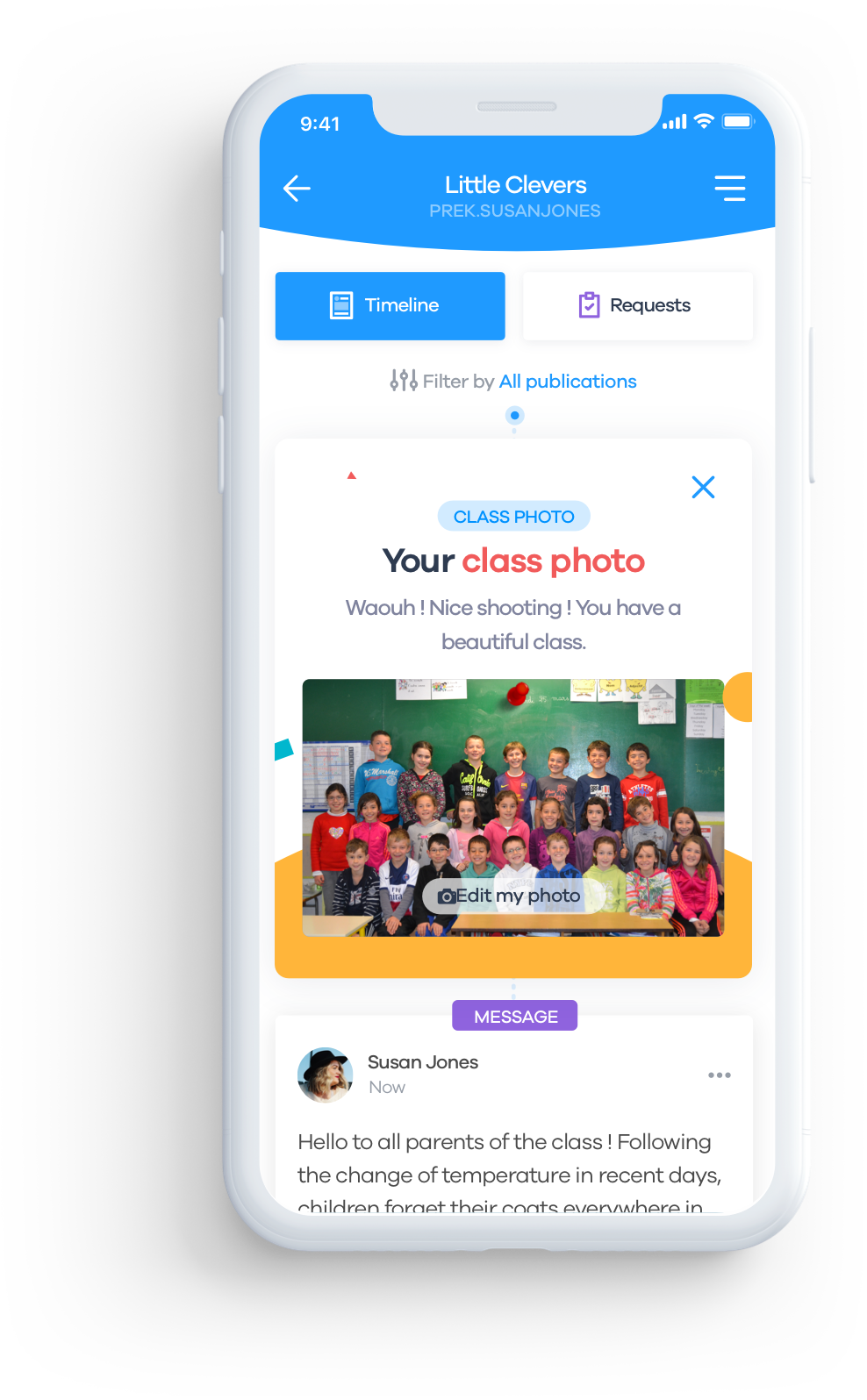 Leraren zijn de fotografen. De klasfoto van je Skoolr-tijdlijn wordt in seconden aan je Skoolbook toegevoegd!