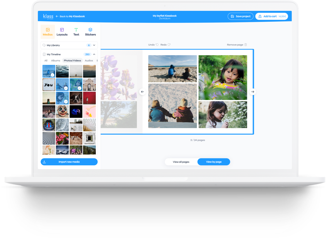 Er is geen training nodig om de Skoolbook-editor te gebruiken. Onze tool is ontworpen om het maken eenvoudig en toegankelijk te maken. Zoek en selecteer de media van school of thuis die je wilt opnemen en maak een uniek jaarboek!